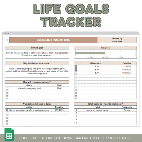 The Ultimate Life Goals Planner and Tracker Spreadsheet