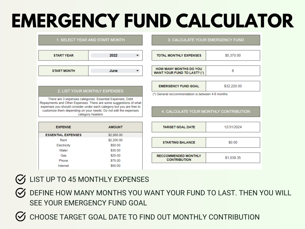 - Adapt your emergency fund goal to your budget and monthly expenses