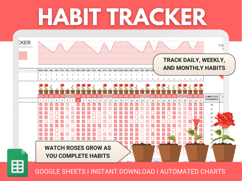 The Roses Habit Tracker Google Sheets Spreadsheet