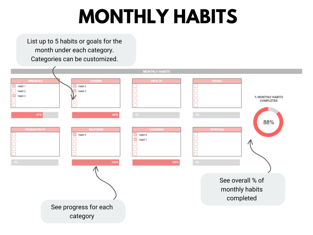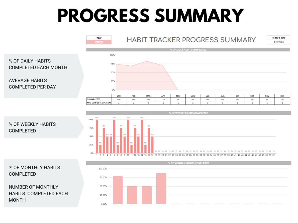 - Easy to Use Habit Tracker: Our spreadsheet is user-friendly and straightforward, making it simple to input and monitor your habits. No complicated setups or learning curves – just effective habit tracking.